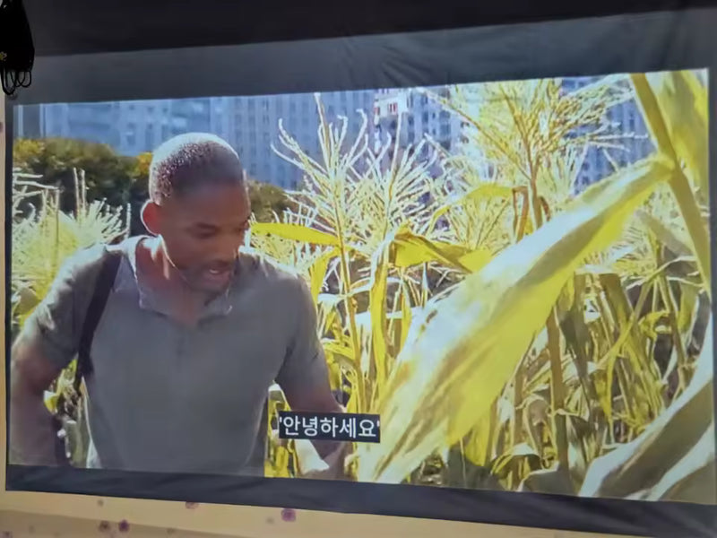 I bought it cheaply with a coupon during the Singles' Day sale. Delivery was also fast. In a situation without a dedicated screen, I tried projecting onto an ivory-colored wallpaper that was close to white. It's worth watching during dinner time