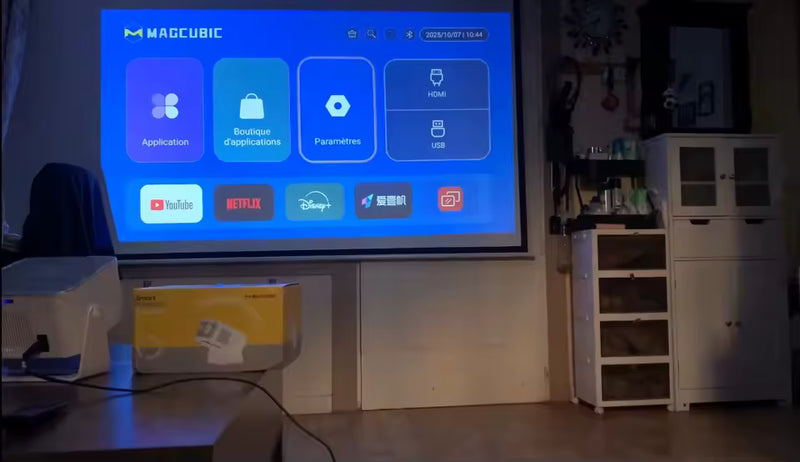 Home cinema room I didn't think a compact projector could produce such a clear image. Installation was super simple: it adjusts itself with autofocus, so no need to fiddle with settings. The image is bright even with a little ambient light, and in full screen it really feels like watching a movie.
